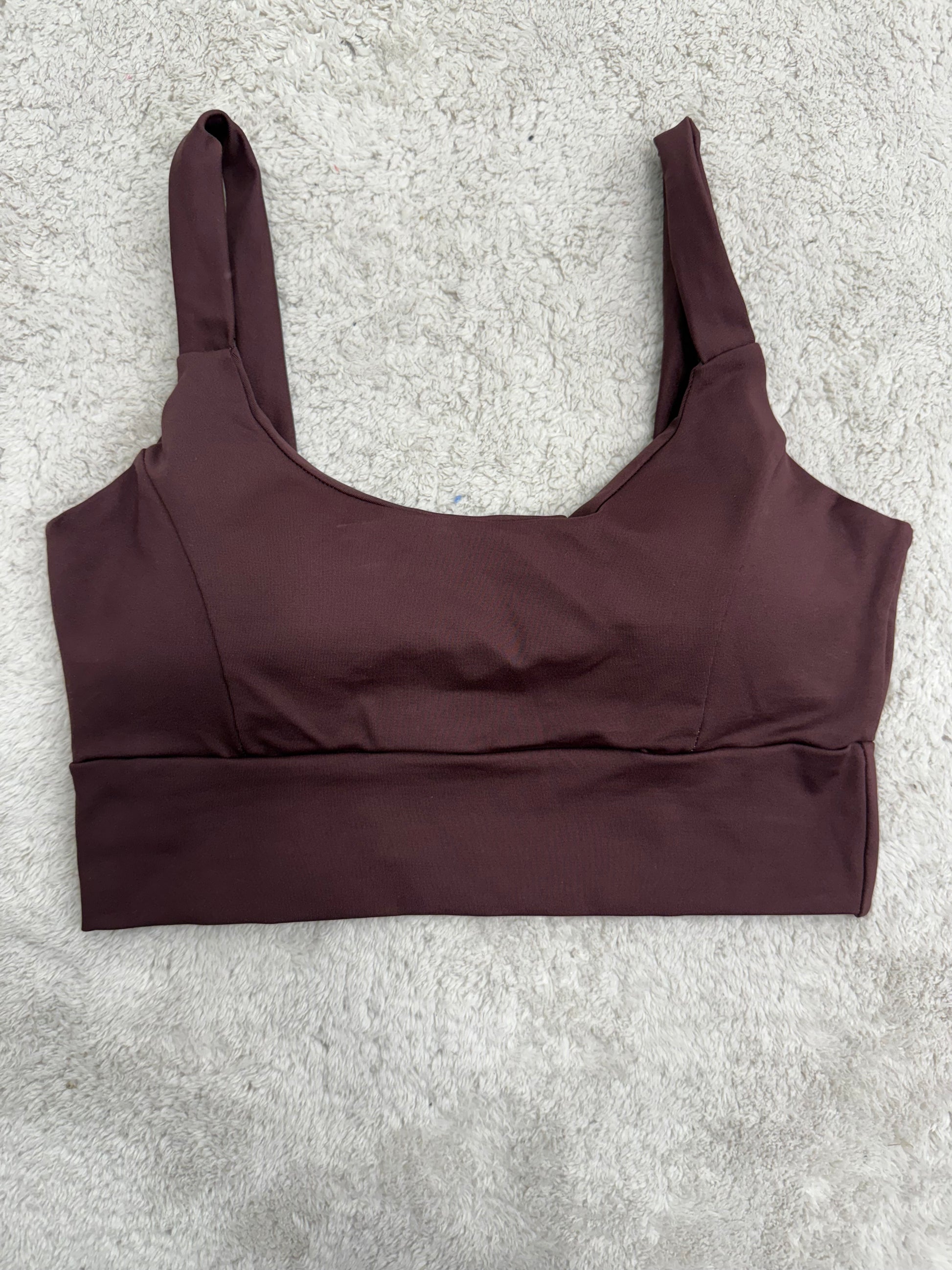 Top comprido produzido no Brasil em poliamida (92% poliamida, 8% elastano), com almofada removível e alças médias para ajuste confortável.